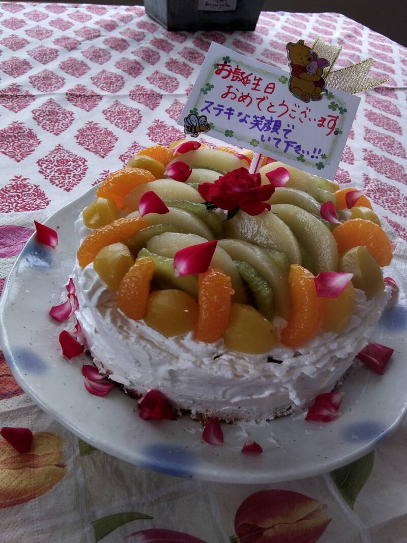季節の果物の手作りケーキで、入居者の皆様でお祝いをします。