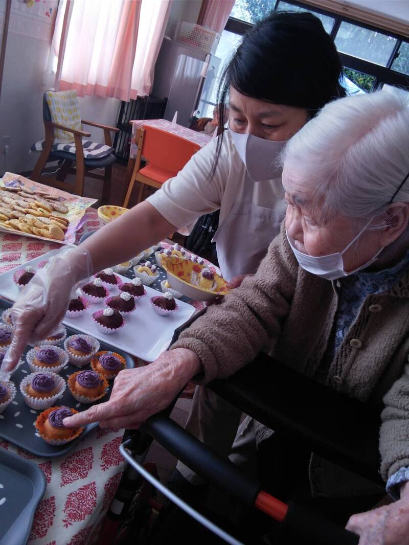 皆さんの前にはカボチャのおばけクッキーや紫芋クリームのケーキ